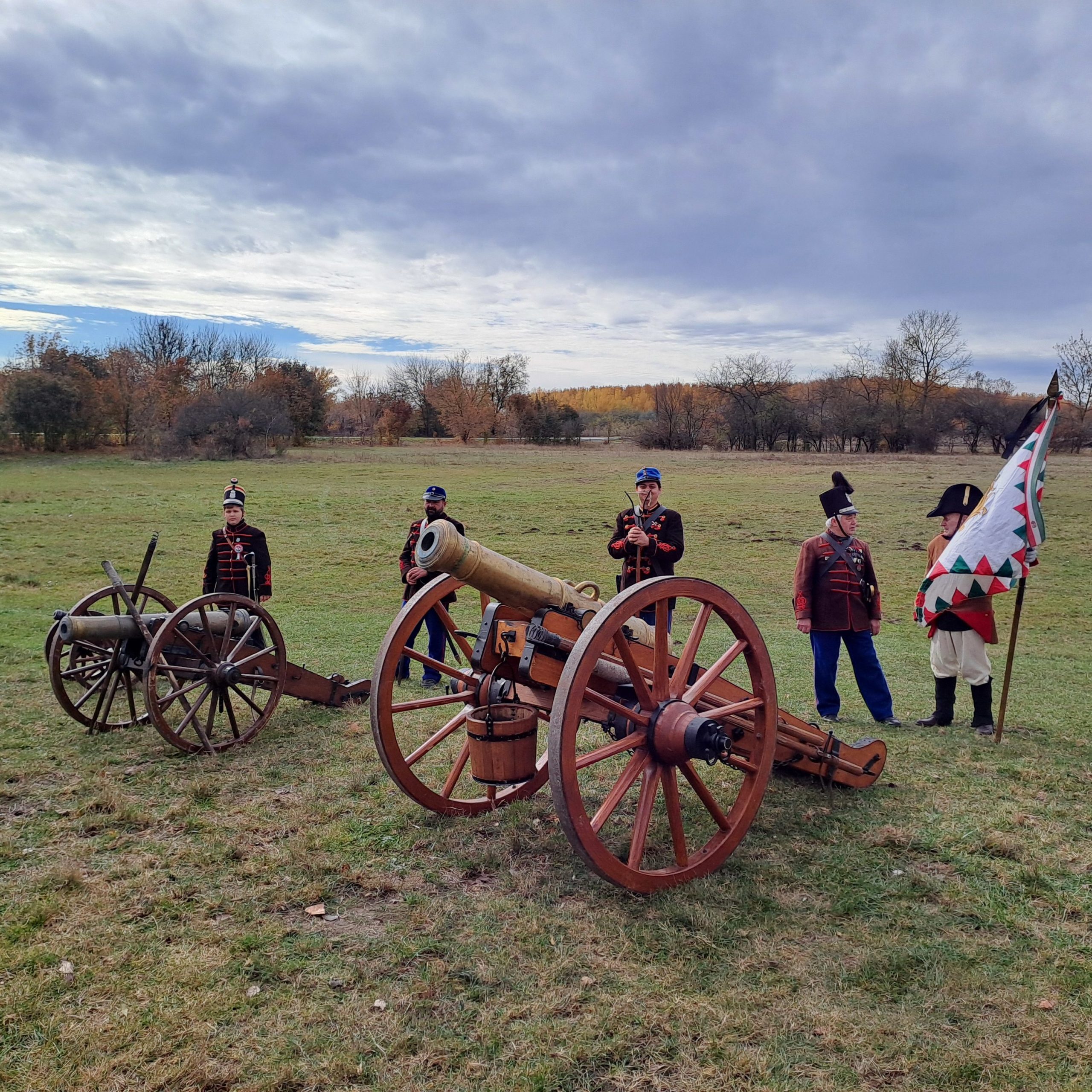 L’association historique locale organise une reconstitution grandeur nature tous les ans, et certains membres en costume étaient présents pour nous faire une petite démonstration : après les explications de l’officier sur le déroulement de la bataille, les soldats révolutionnaires ont fait tonner les canons, un jeune aide de camp a interprété un chant patriotique et l’organisateur en chef Maté a fait (long) feu avec un mousquet d’époque.